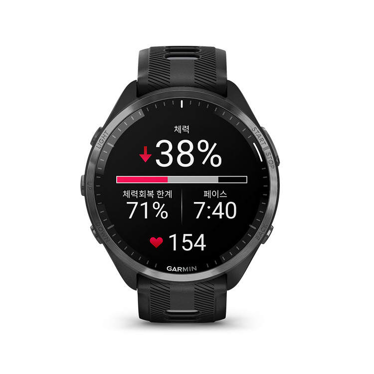 AMOLED 터치스크린 / 디스플레이 해상도 454 x 454 픽셀 / 멀티밴드 GNSS 지원 / 손목에서 확인 하는 러닝 파워 정보 / 손목 기반 어드밴스드 러닝 다이나믹스 / 실시간 체력 / 훈련 부하/운동효율/훈련상태 / 애니메이션 동작 가이드 / 심박변이도HRV 상태 / 예상 완주 시간 / 내장 맵 / 사고방지 / 아시스턴스 등.